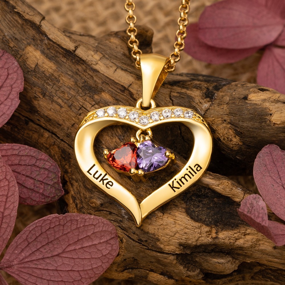 Personalisierte Halskette für Paare in Herzform mit eingraviertem Namen und Geburtsstein, perfektes Geschenk für Seelenverwandte, Jahrestagsgeschenk