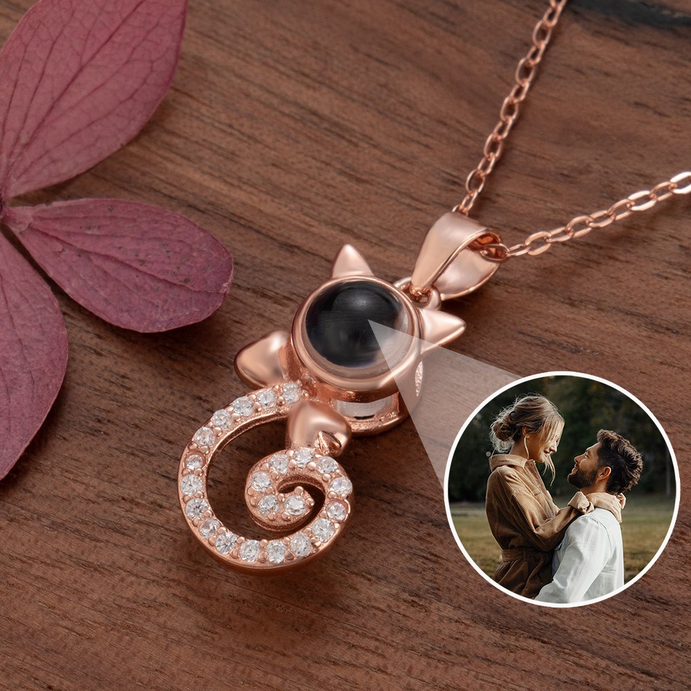 Personalisierte Halskette mit Fotoprojektion in Katzenform, modisches Cartoon-Geschenk für sie, Geschenk für Paare