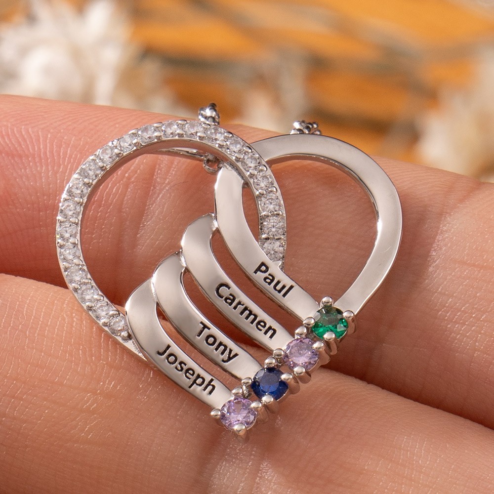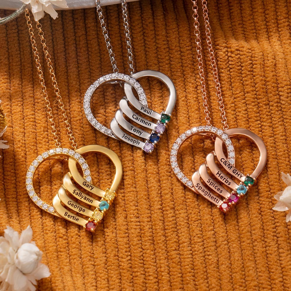 Personalisierte Halskette mit gravierten Namen und Geburtssteinen – ein Erinnerungsgeschenk für Mama, Oma oder frischgebackene Mütter. Geschenkideen für besondere Anlässe.