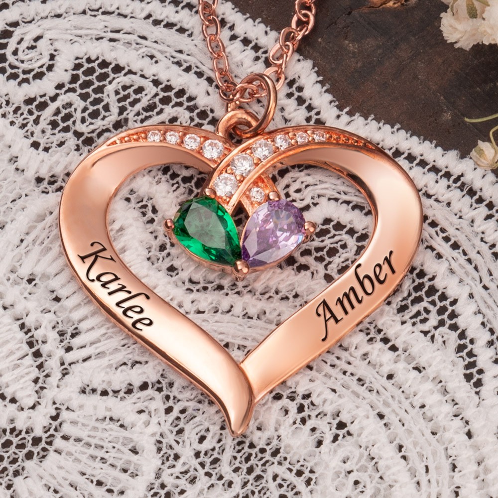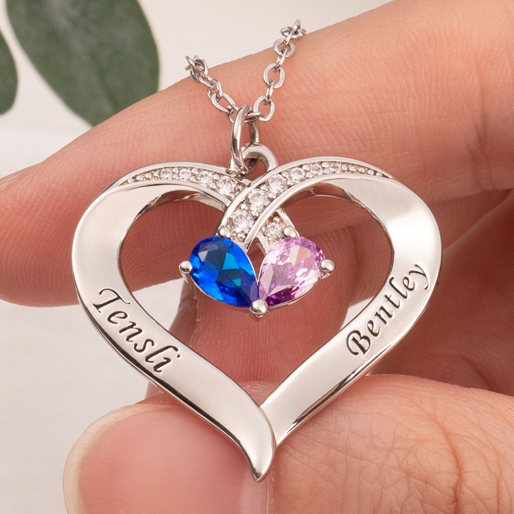 Personalisierte Herz-Namenskette für Paare mit Geburtsstein-Design, Jubiläumsgeschenke, Liebesgeschenke für den Seelenverwandten