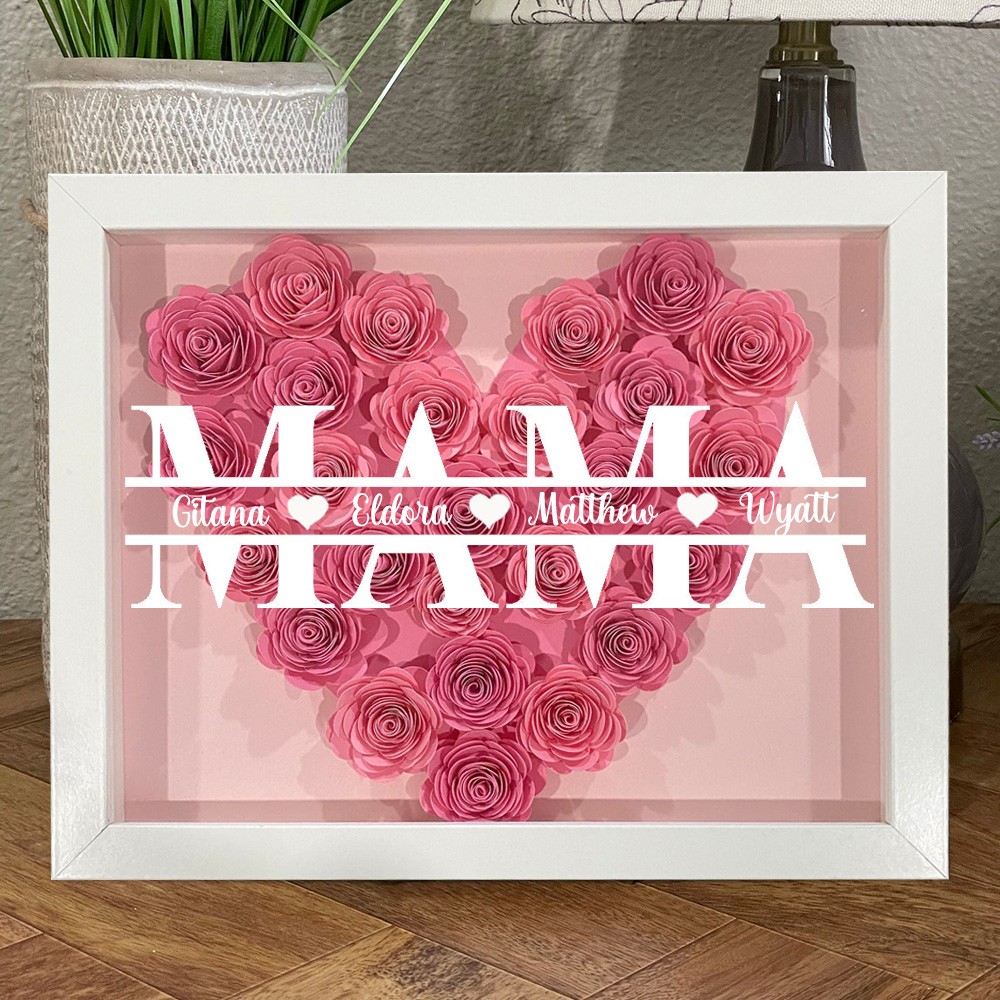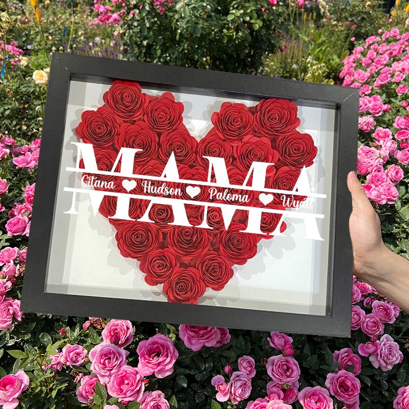 Personalisierte Kunstdruck-Mutter in Herzform, Papierblume, Schattenholzbox mit Kindernamen, Andenkengeschenk für Mama und Oma, einzigartiges Muttertagsgeschenk