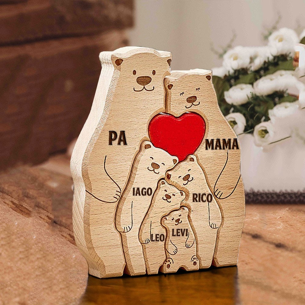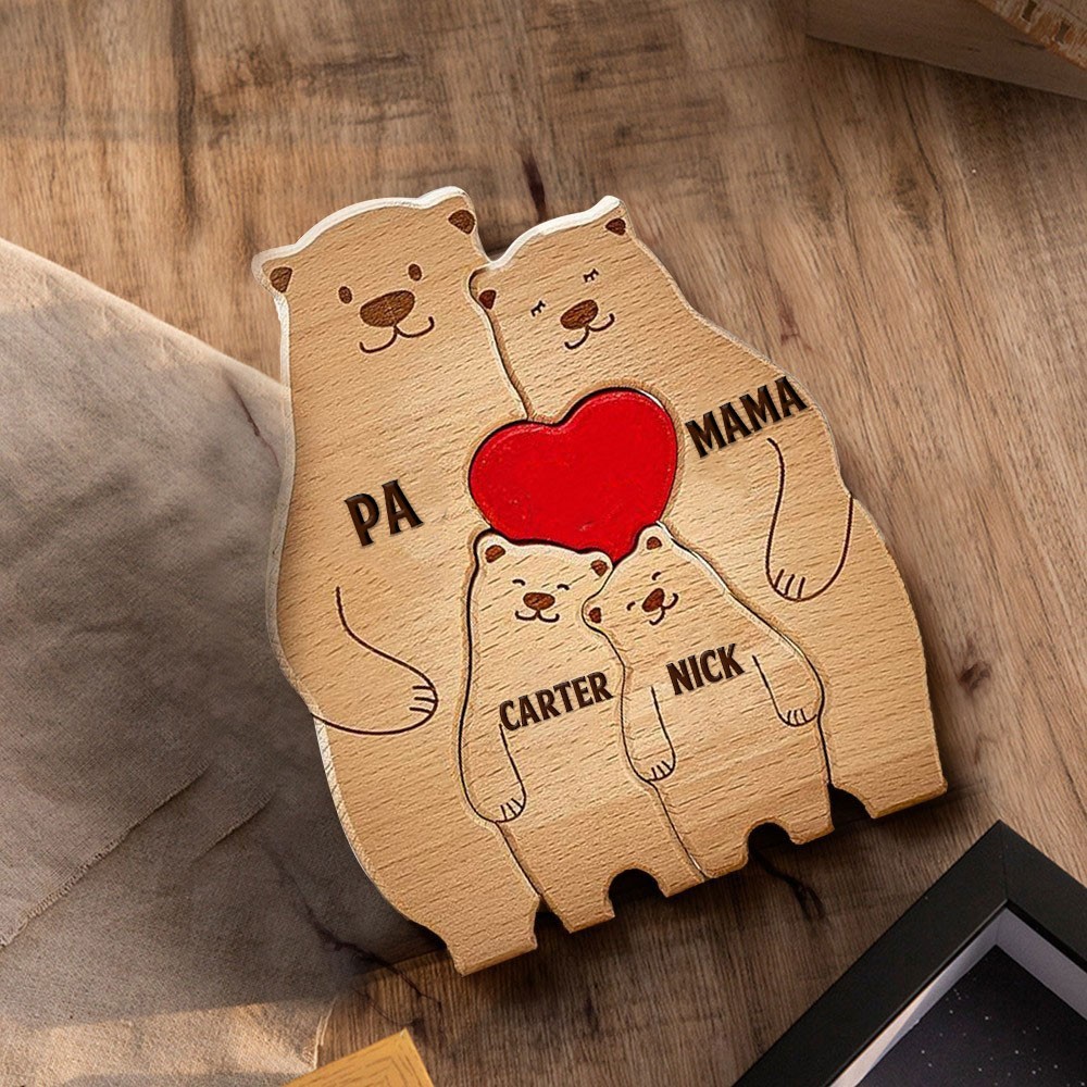 Personalisierte Holz-Puzzleblöcke mit Bärenfamilie und Kindernamen. Einzigartiges Familiengeschenk für Mama, Oma, Muttertagsgeschenkideen, Geburtstagsgeschenk für Kinder