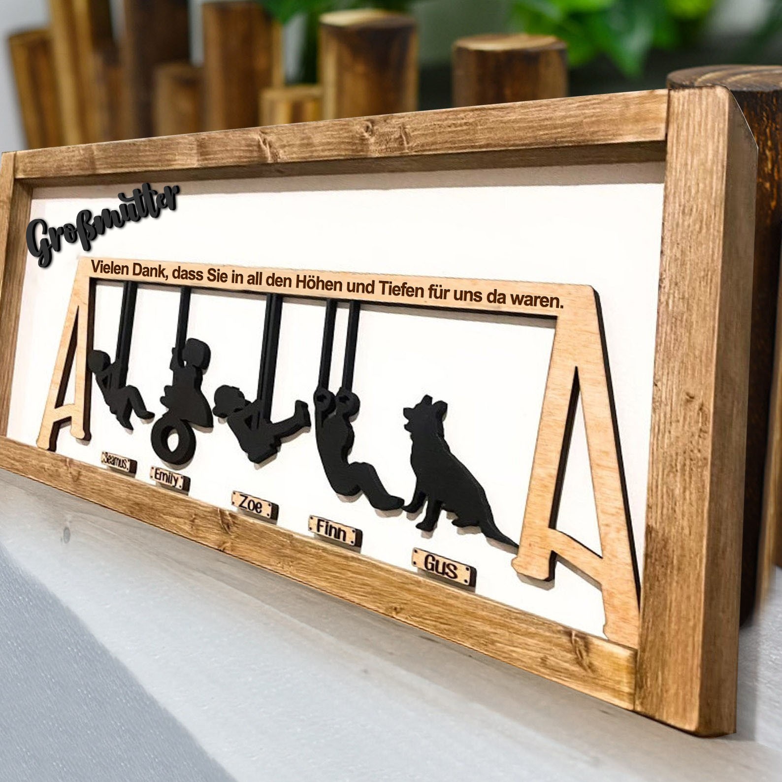 Personalisiertes Oma-Familien-Mini-Schaukelschild aus Holz mit den Namen der Enkelkinder, perfektes Muttertagsgeschenk, einzigartiges Andenken für Mama, Oma