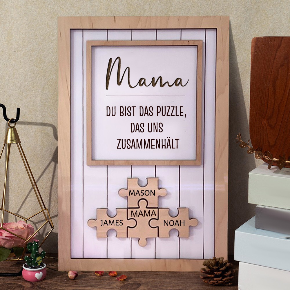 Personalisiertes Schild aus Holz-Mutter-Puzzleteilen mit Kindernamen, einzigartige Geschenkideen zum Muttertag, perfektes Familiengeschenk für Mutter und Oma