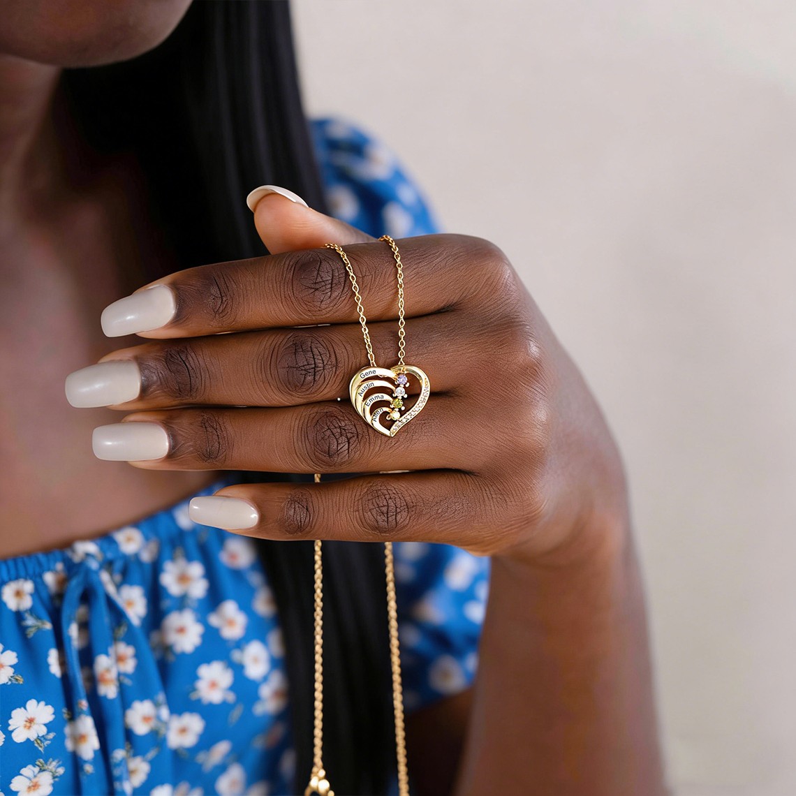 Personalisierte Namenskette mit Gravur und Geburtsstein – Familienschmuck, Herzkette, perfektes Geschenk zum Geburtstag oder Muttertag
