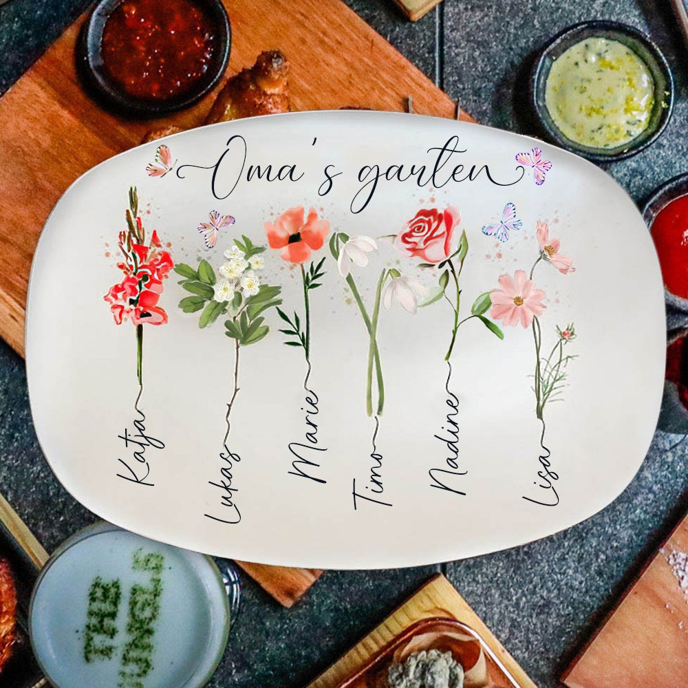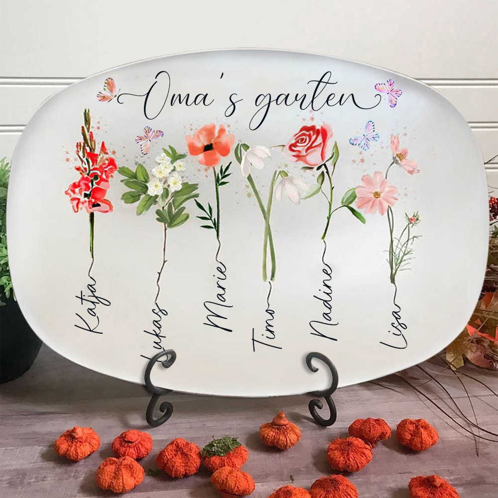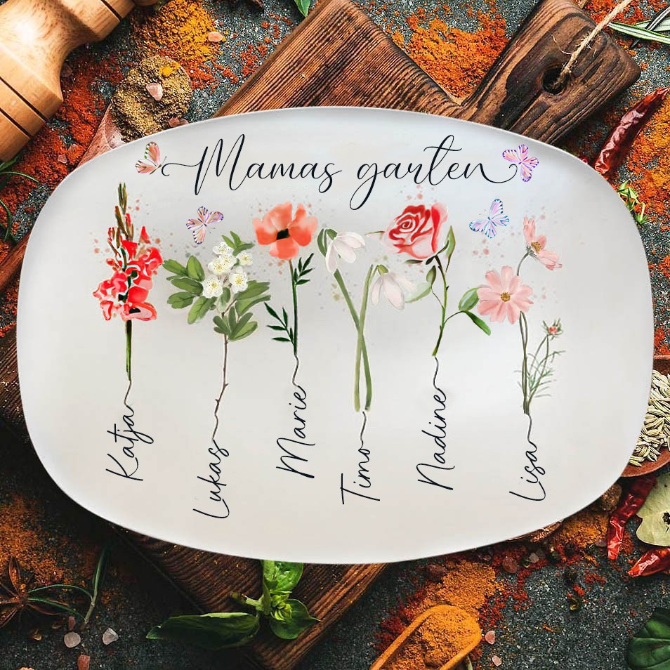 Personalisierter Gartenteller für Mama, bedruckt mit Geburtsblumen, Kindernamen, Geschenkideen für die Familie und die Küche für Mama und Oma, einzigartige Geschenkideen zum Muttertag