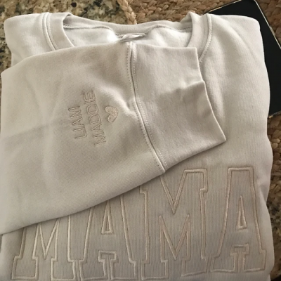 Personalisierter bestickter Mama-Sweatshirt-Hoodie mit Kindernamen am Ärmel Muttertagsgeschenk