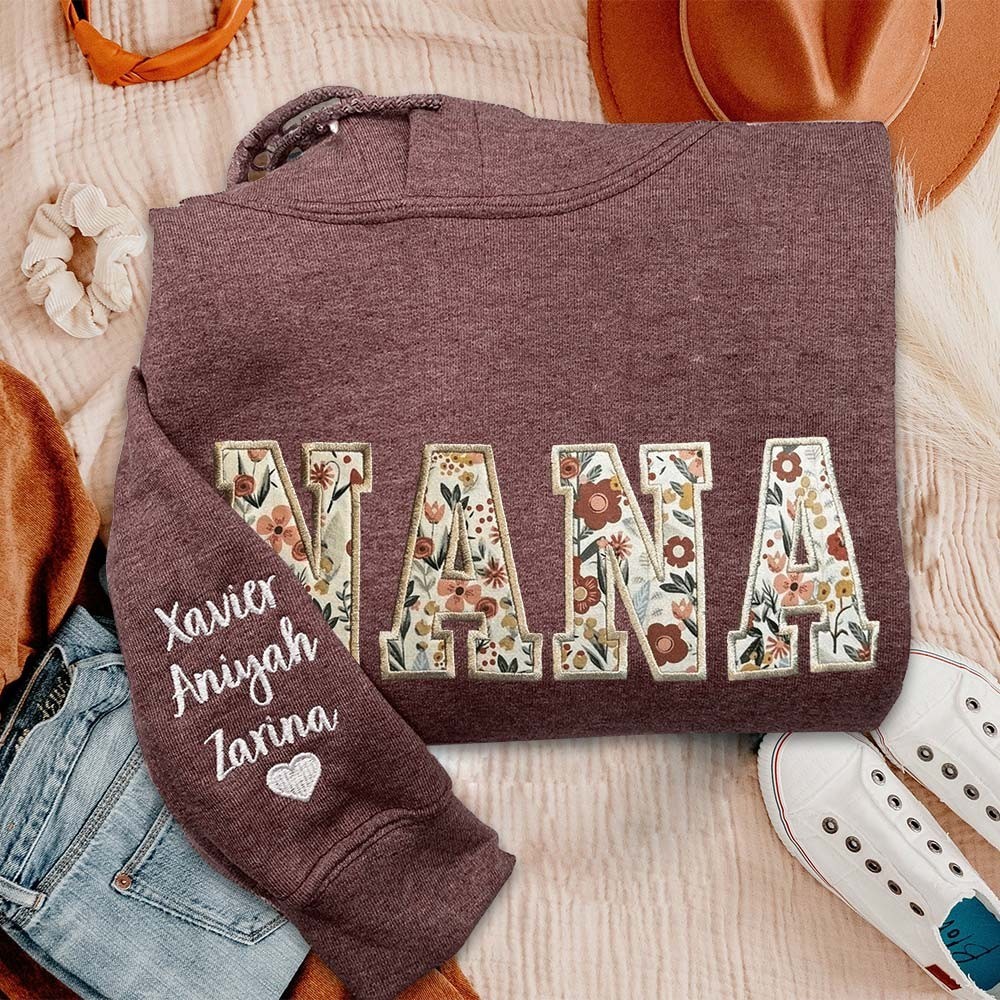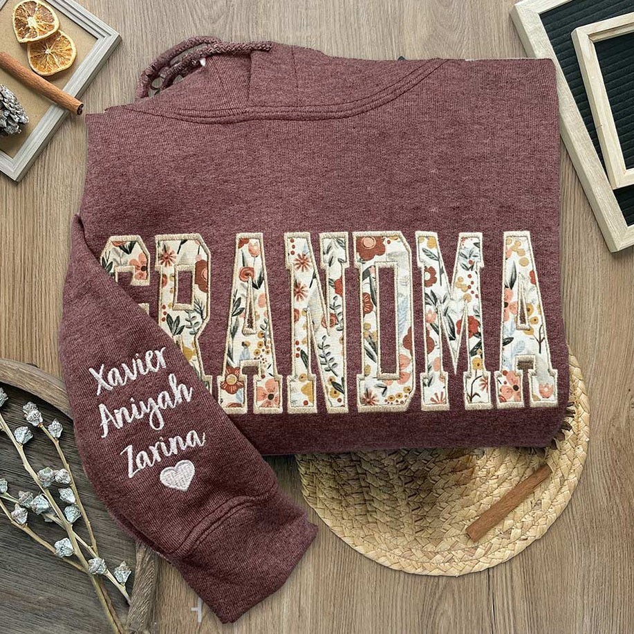 Personalisierter bestickter Mama-Sweatshirt-Kapuzenpullover mit Namen auf den Ärmeln, Erinnerungsgeschenk, einzigartiges Weihnachtsgeschenk
