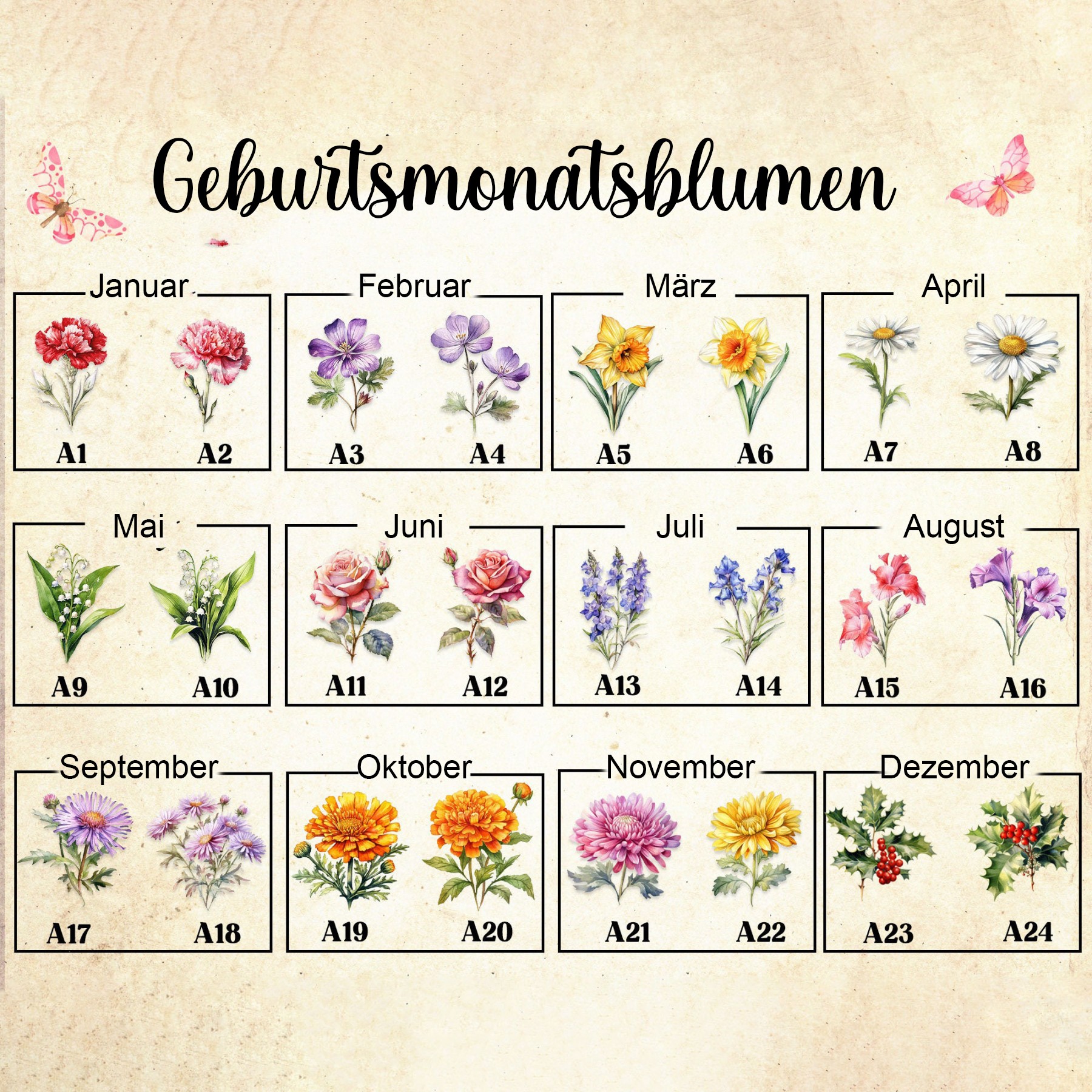 Personalisierter Bilderrahmen mit Geburtsmonat, Blumen und Namen – Familienerinnerungsstück, Geschenkidee für Mama, Oma, Muttertag