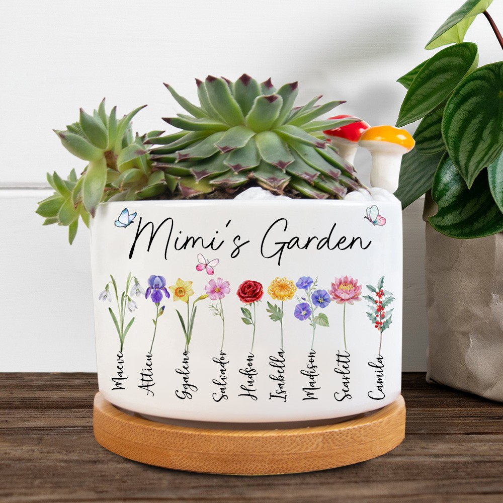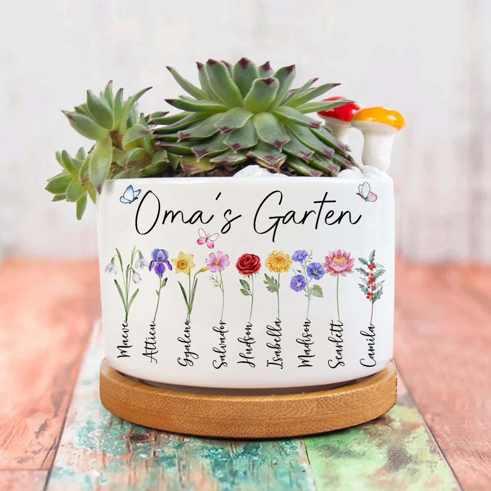 Personalisierter Mini-Sukkulenten-Pflanztopf mit Wasserfarben-Motiv „Mama's Garden“ zur Geburt, mit Kindernamen, einzigartiges Gartengeschenk für Mama, Oma, Geschenkideen zum Muttertag