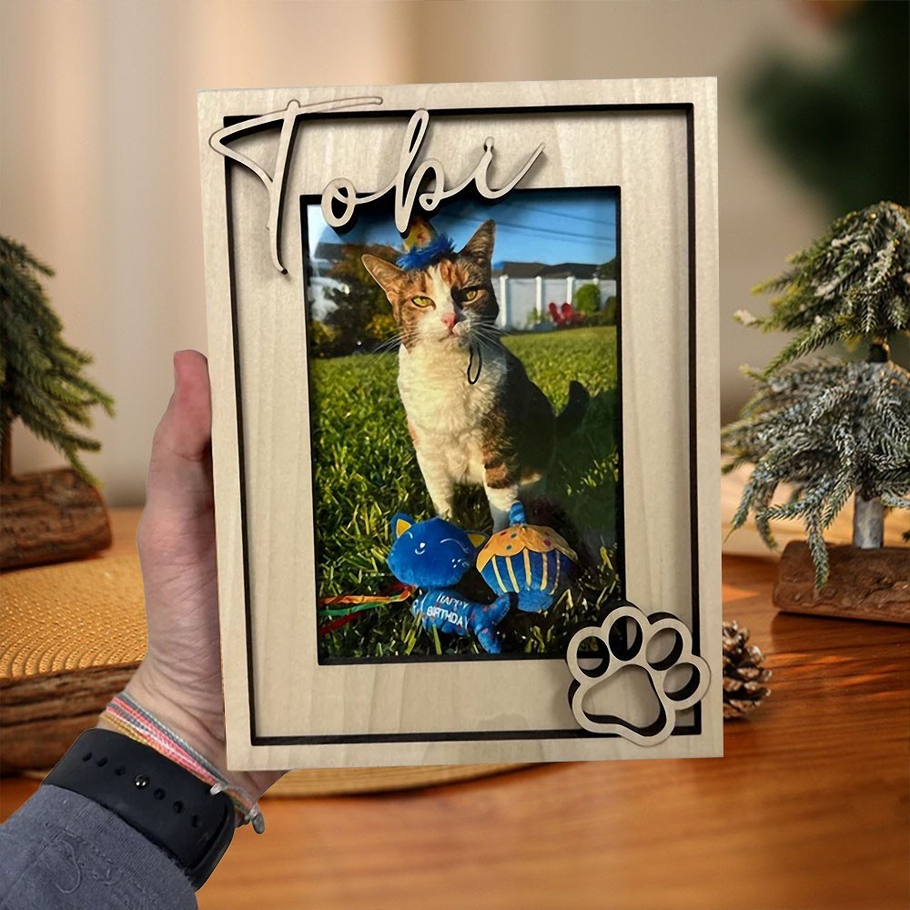 Personalisierter Erinnerungs-Fotorahmen aus Holz mit Namensgravur – ein bleibendes Geschenk für Tierliebhaber