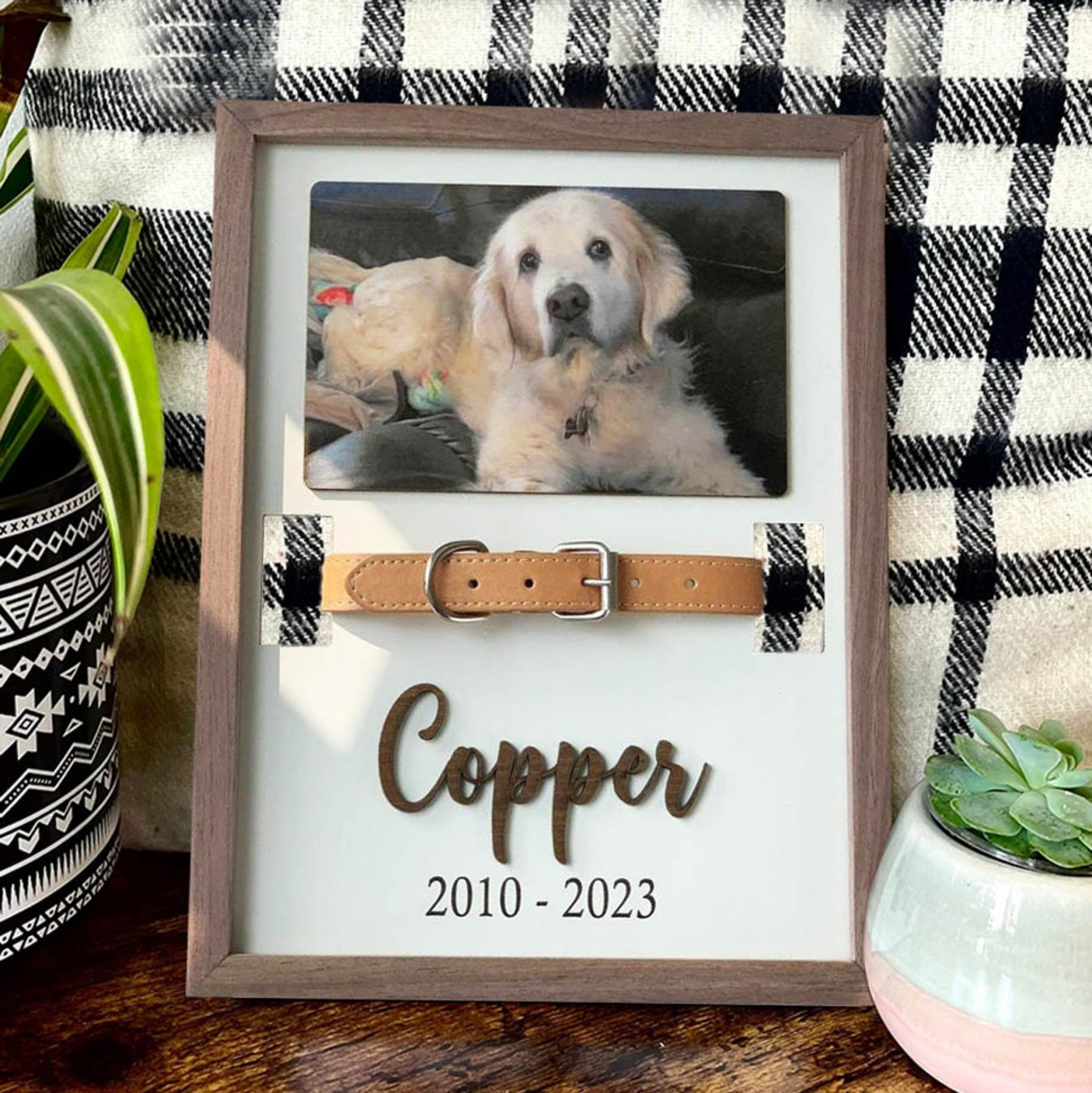 Personalisierter Gedenkrahmen aus Holz für Hunde mit Halsbandhalter | Andenken & Geschenk bei Haustierverlust, einzigartiges Weihnachtsgeschenk