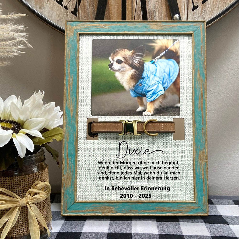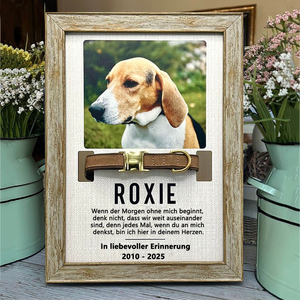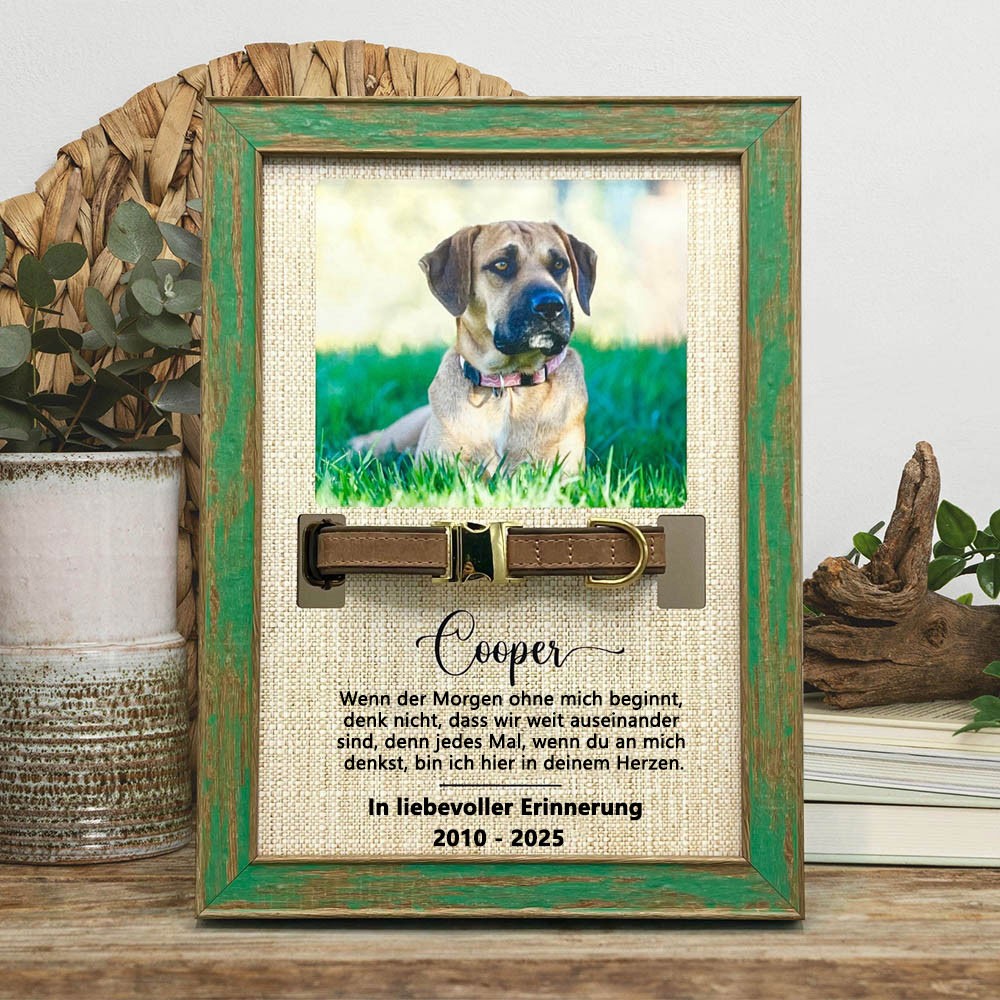 Personalisierter Gedenkrahmen aus Holz mit Halsbandhalter – Geschenk zur Trauer um einen verstorbenen Hund