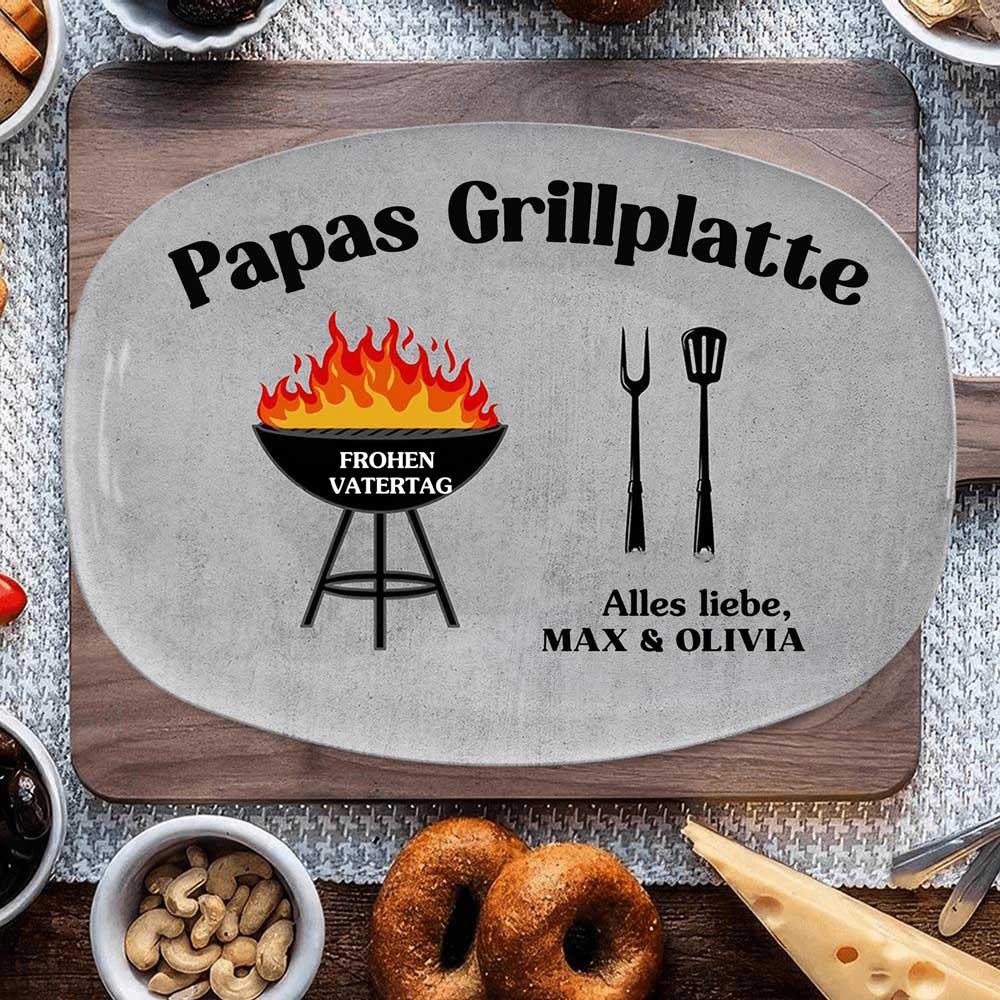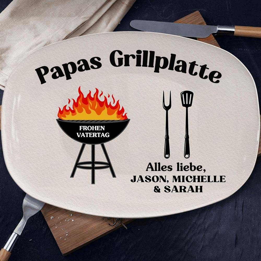 Überraschen Sie Ihren Vater mit unserem individuellen Grillteller für Papa, der mit den Namen seiner Kinder verziert ist – ein aufmerksames Vatertagsgeschenk, das seine Liebe zum Grillen feiert und seinen Kochabenteuern im Freien eine persönliche Note verleiht.