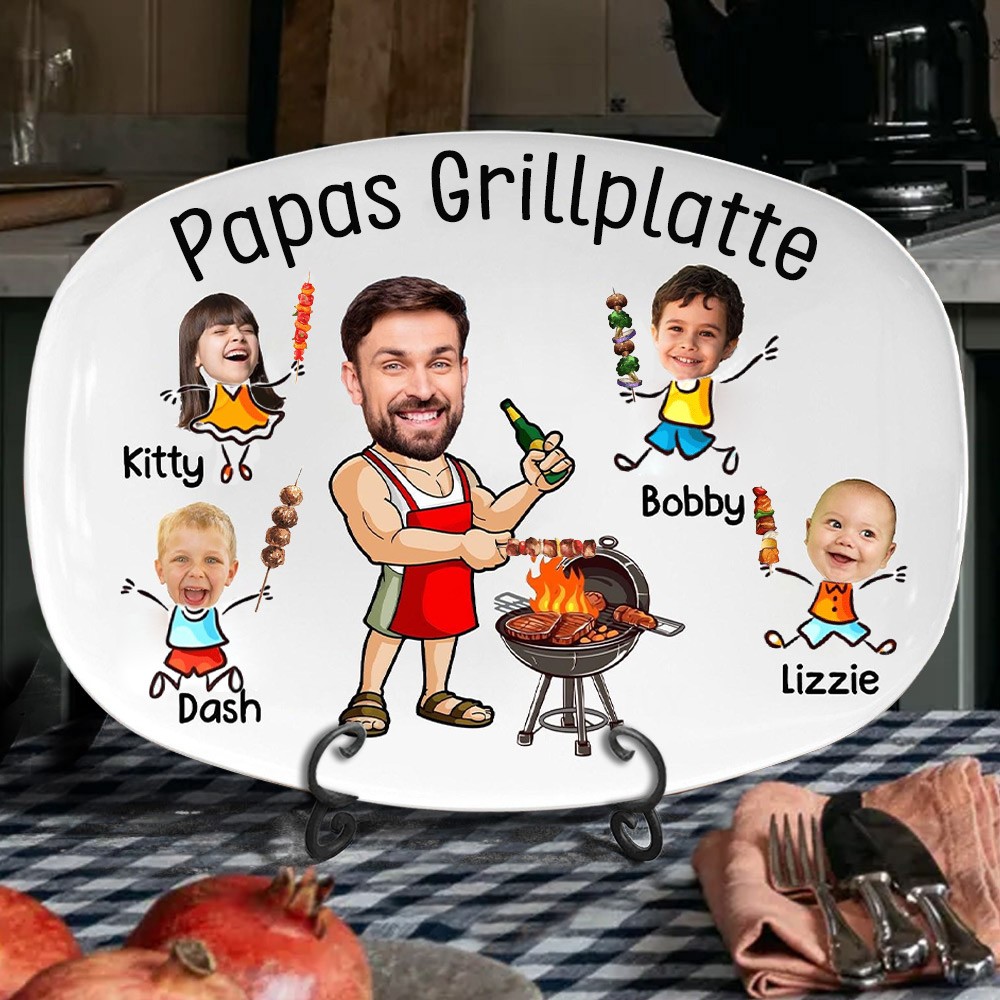 Personalisierter Grillteller für Papa mit Kinderportrait und Namen, individueller Grillteller für die Familie, einzigartige Küchengeschenke für Papa, Vatertagsgeschenke