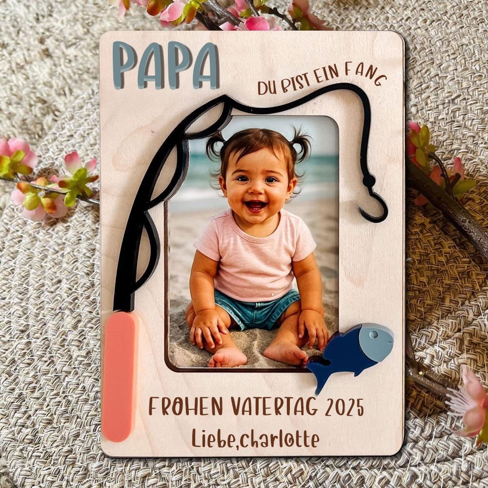 Personalisierter Kühlschrankmagnet aus Holz mit Angelmotiv, individueller Bilderrahmenmagnet, einzigartiges Geschenk für Papa, Opa, Vatertag, Geschenkideen