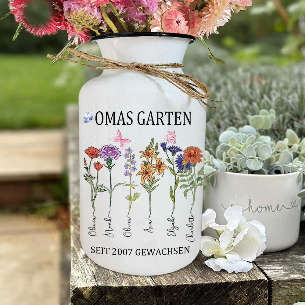 Personalisierter Kunstdruck Aquarell Mamas Garten Geburtsblumen Familienvase mit Kindernamen Einzigartiges Wohndekor Geschenk für Mama Oma Muttertag Geschenkideen