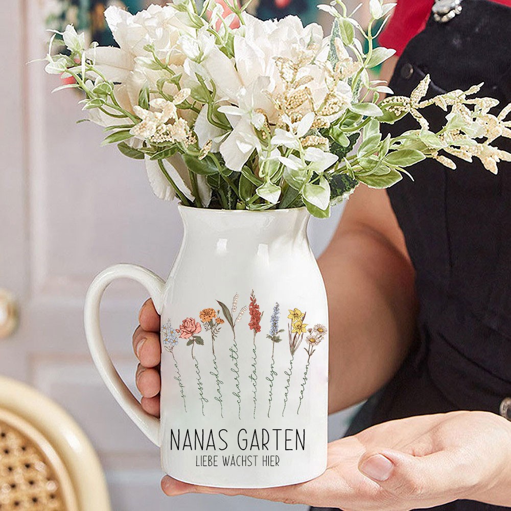 Personalisierter Kunstdruck, Geburtsblumenvase aus Mamas Garten mit Kindernamen, bedeutungsvolles Geburtstagsgeschenk für Mama und Oma, einzigartige Geschenkideen zum Muttertag