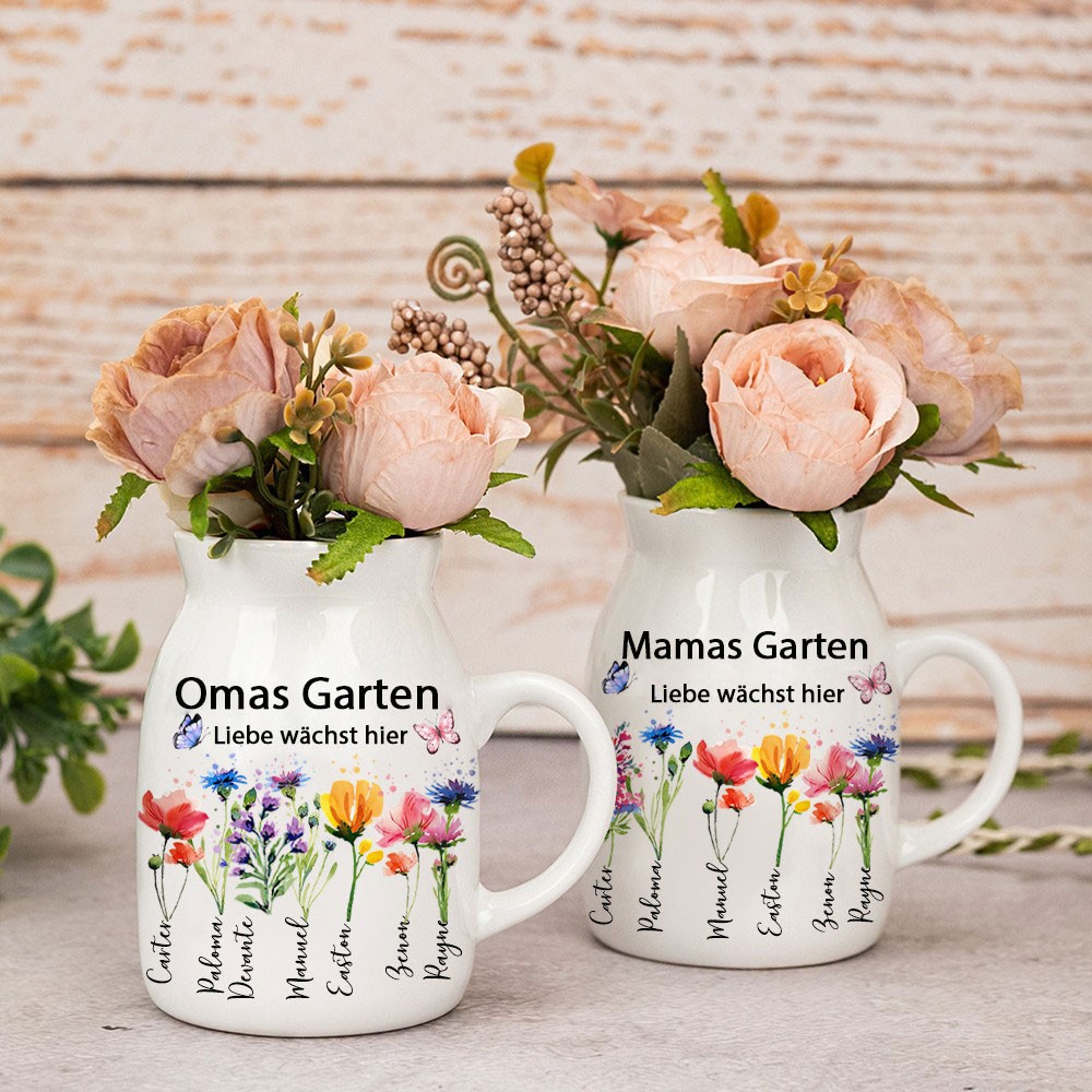 Personalisierter Kunstdruck, Mamas Garten, Geburtsblume, Familienvase mit Kindernamen, Geschenk für den Innenbereich, für Mama, Oma, einzigartige Geschenkidee zum Muttertag