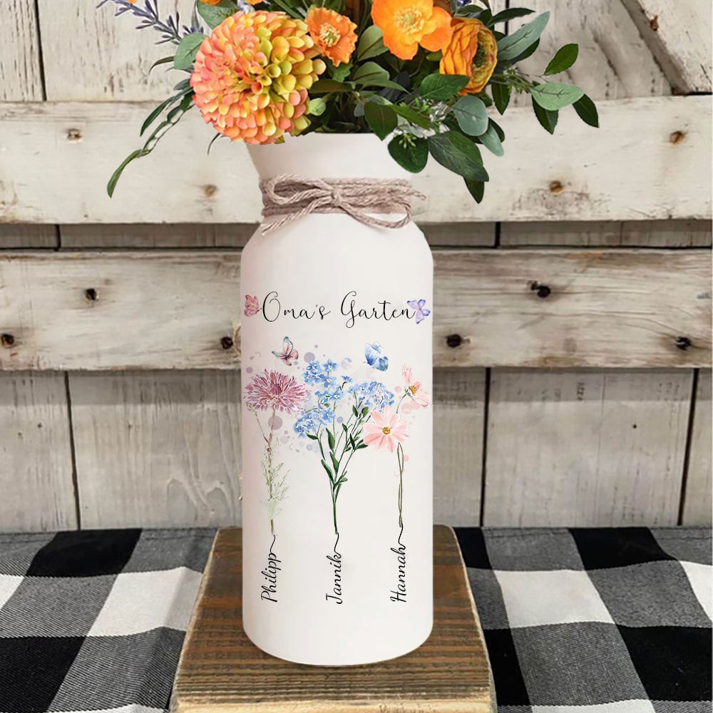 Personalisierter Kunstdruck „Mamas Garten“ – Geburtsblumenvase mit Kindernamen – Einzigartiges Familienandenken – Geschenke für Mama – Geburtstagsgeschenk für Oma – Muttertagsgeschenke