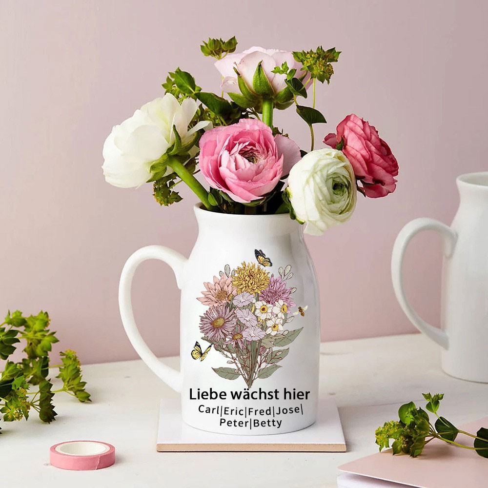 Personalisierter Kunstdruck, Mimis Garten, Geburtsblumenstrauß, Vase mit Kindernamen, Familiengeschenk für Mama, Oma, Geburtstagsgeschenk, Muttertagsgeschenkideen