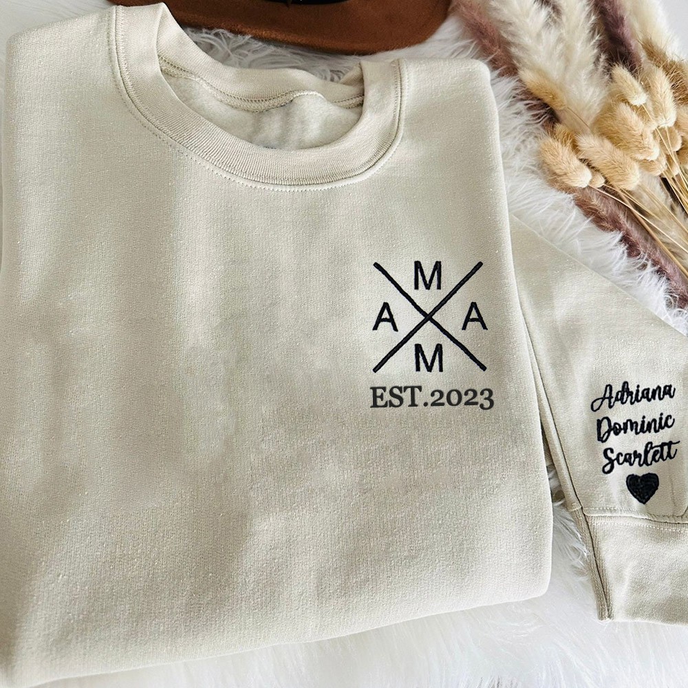 Personalisierter MAMA Bestickter Sweatshirt Hoodie mit Kindernamen Familienandenken Geschenk für Mama Oma Einzigartige Muttertagsgeschenkideen Babyparty-Geschenk für die Frau