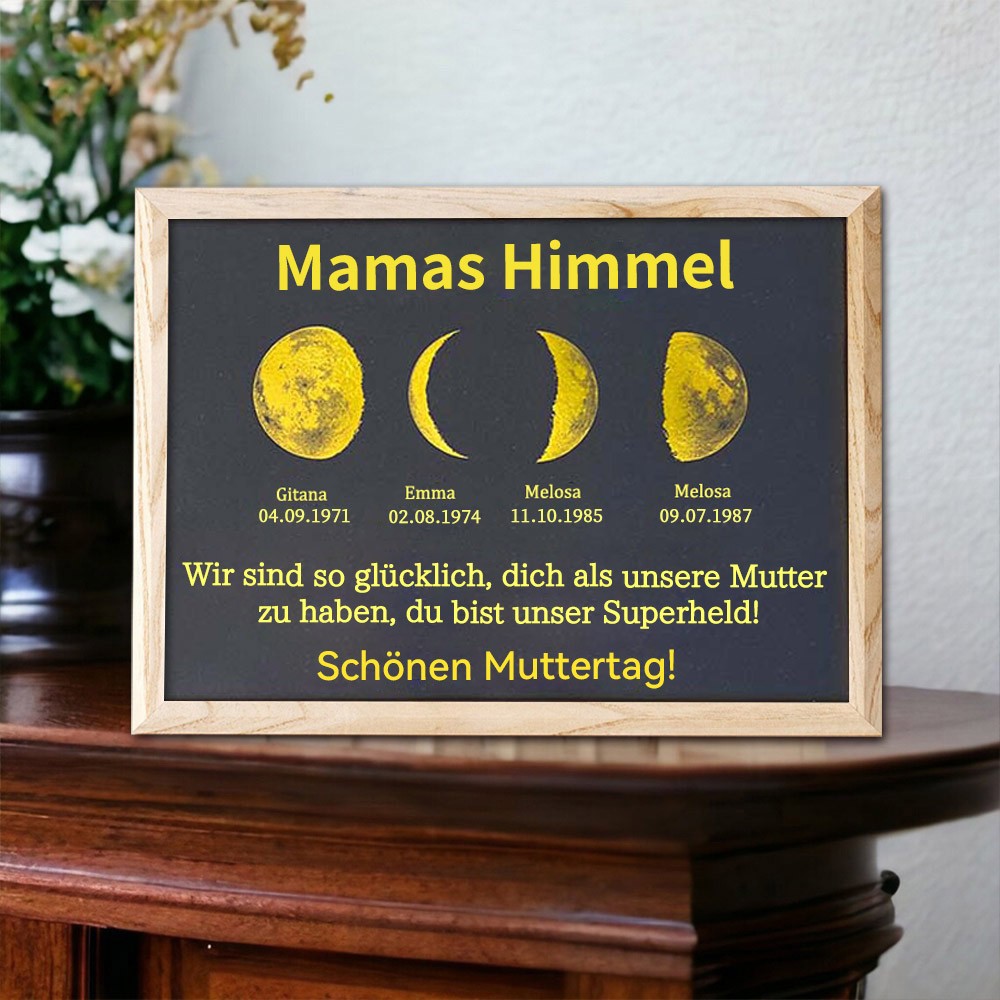 Benutzerdefiniertes Holz-Kunstdruck-Mondphasen-Rahmenschild mit Kindernamen, einzigartiges Familiengeschenk für Mutter, Oma, bedeutungsvolle Muttertagsgeschenke