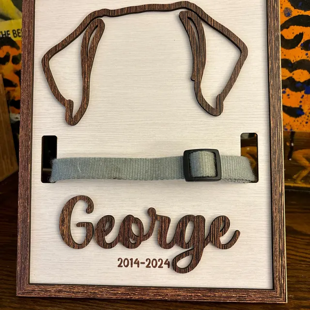 Personalisierter Rahmen mit Hundeohren-Silhouette und Halsbandhalter | Gedenkgeschenk für Hundeliebhaber, einzigartiges Weihnachtsgeschenk