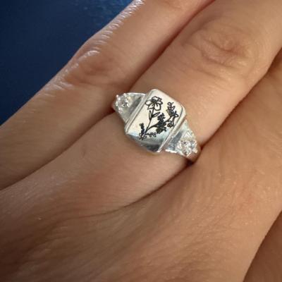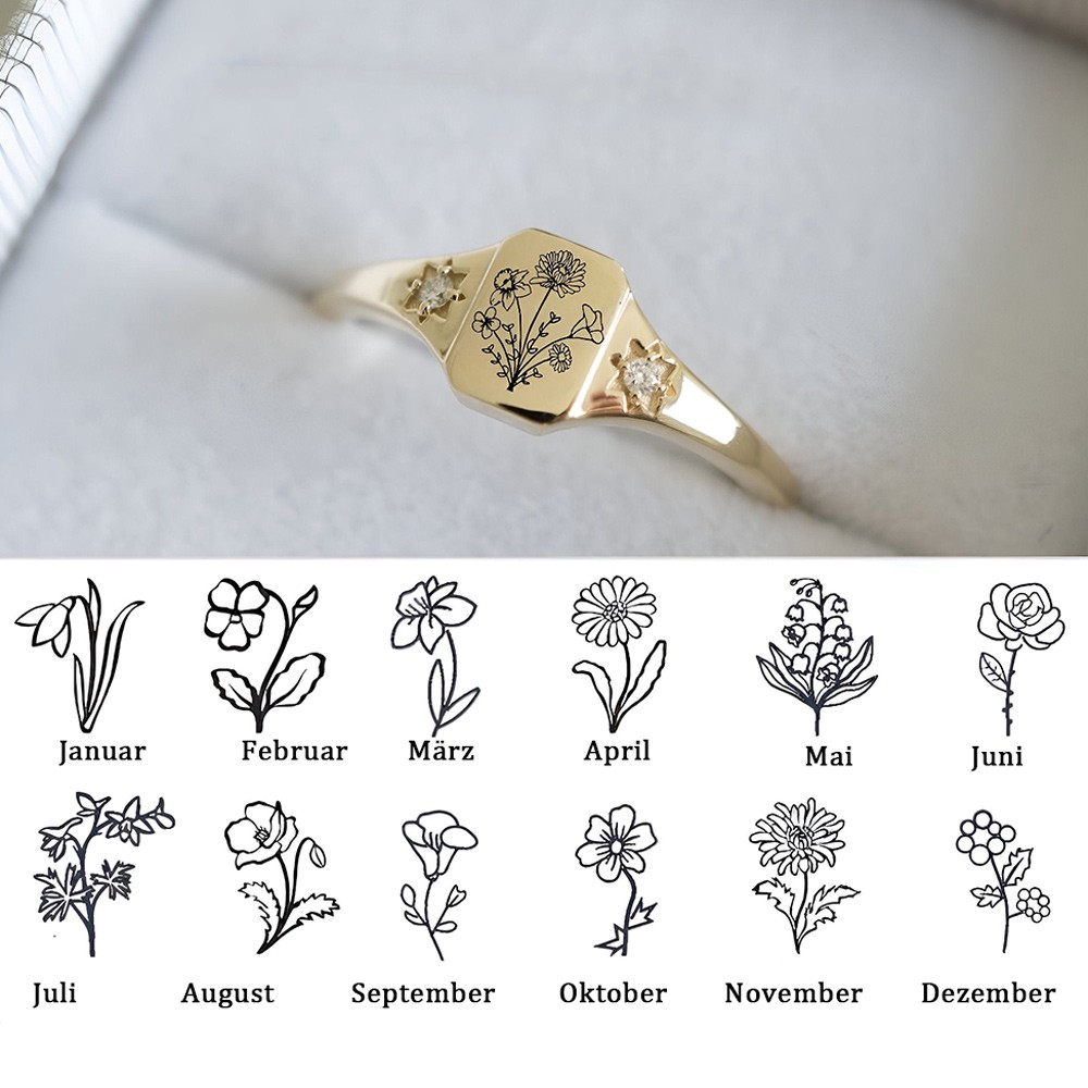 Personalisierter Verlobungsring mit Geburtsblumenstrauß für Frauen, Gravur, 925 Sterling Silber, Statement-Blumenring, einzigartiges Geschenk für Mama, Oma, Muttertagsgeschenk, Geburtstagsgeschenk