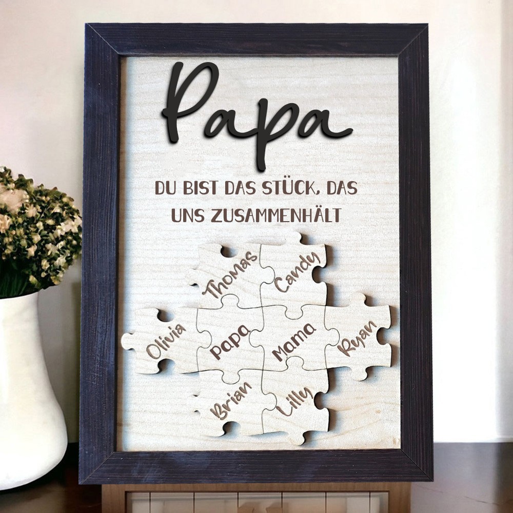 Personalisiertes Familienschild aus Holz, PAPA Puzzle Schild, Einzigartige Geburtstagsgeschenke für Papa, individuelles Puzzle-Andenkenschild, Familiengeschenk für Opa, Vatertagsgeschenk