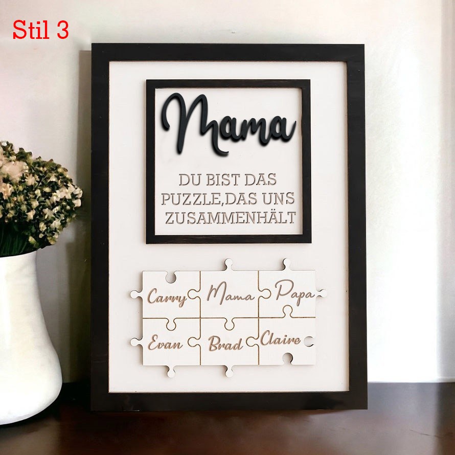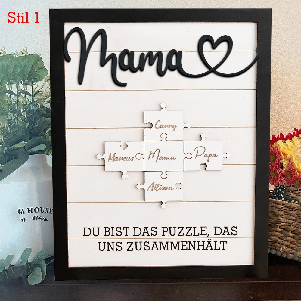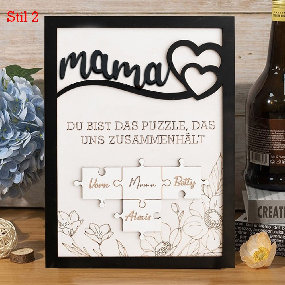 Personalisiertes handgemachtes Rahmenschild aus Holz-Puzzleteilen für Mütter mit Kindernamen, einzigartiges Familiengeschenk für Mama, Oma, Geschenkideen zum Muttertag