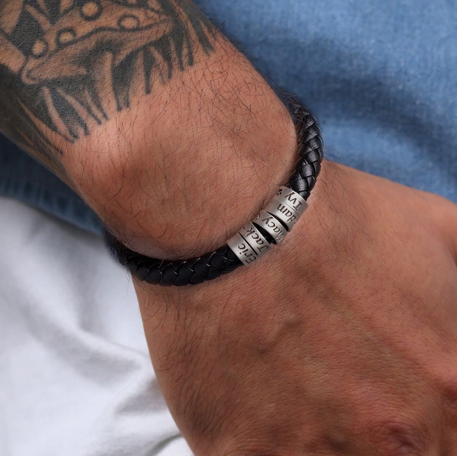 Personalisiertes Herren-Lederarmband mit Perlen und Kindernamen – das perfekte Geschenk für Papa zum Vatertag