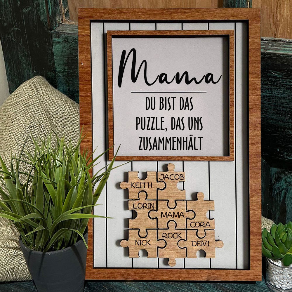 Personalisiertes Holz-Mama-Puzzleteile, Familienschild mit Kindernamen, Andenken, Geschenk für Mama, Oma, einzigartige Geschenkideen zum Muttertag
