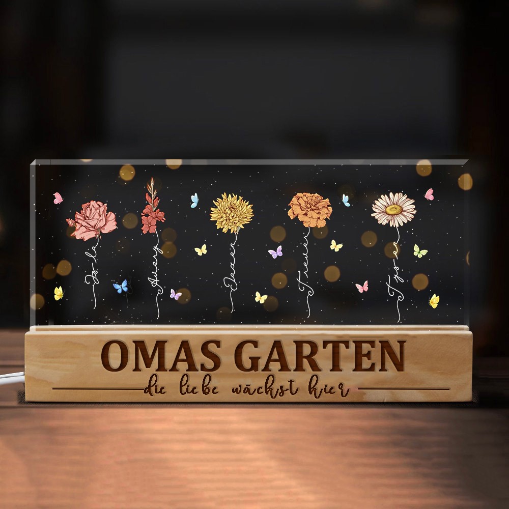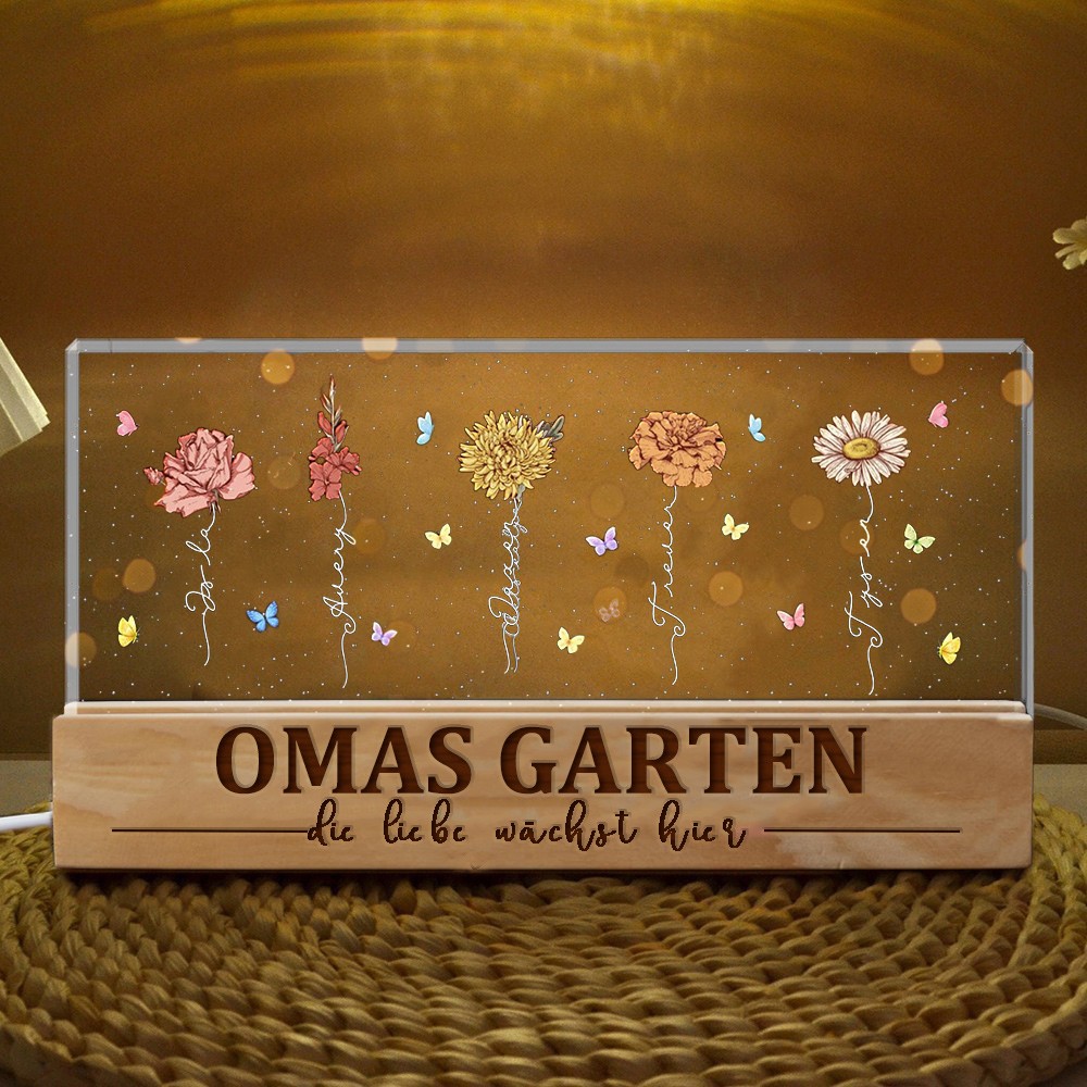 Personalisierte Mamas Garten-Nachtlicht Lampe aus Holz mit aufgedruckten Geburtsblumen und Kindernamen, Geburtstagsgeschenke für Mama, Oma, einzigartige Geschenkideen zum Muttertag