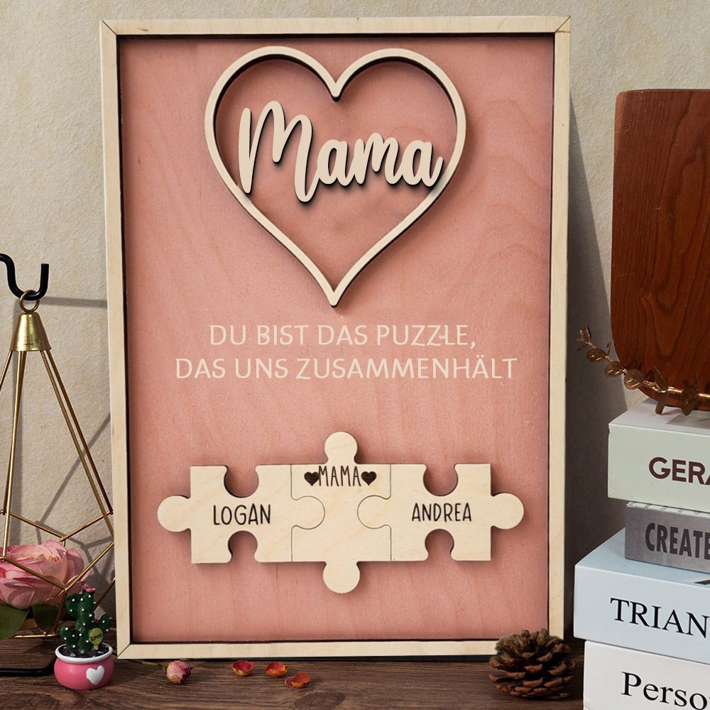 Personalisiertes Holz-Puzzleschild für Mama mit dem Namen des Kindes, individuelles Familienschild, einzigartiges Geschenk für Mama, Oma, Geschenkidee zum Muttertag