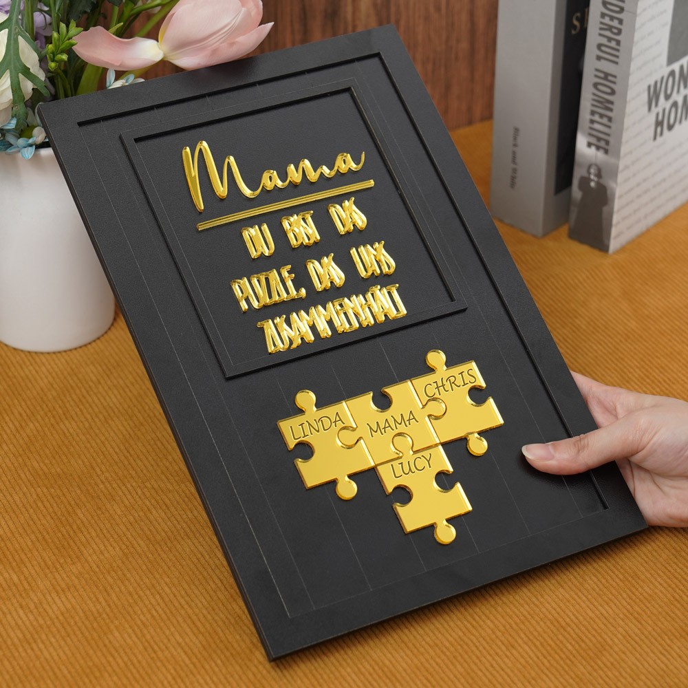 Personalisiertes Holz-Puzzleteil-Rahmenschild mit Kindernamen, Einzigartige Familiengeschenke für Mama und Oma, Einzigartige Muttertagsgeschenke