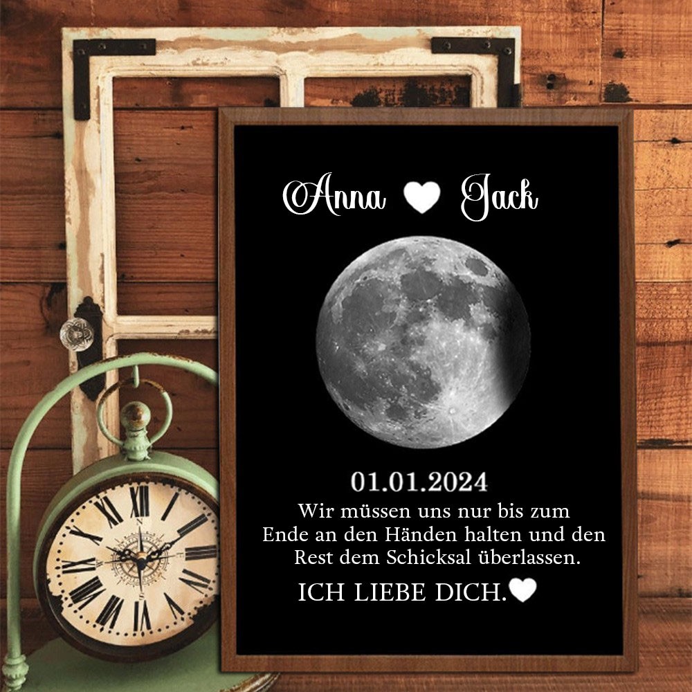 Personalisiertes Holzpaar-Kunst-Mondphasen-Druckrahmenschild mit Namen, Geburtstagsgeschenk für Freundin, Jahrestagsgeschenk, einzigartige Geschenkideen zum Valentinstag
