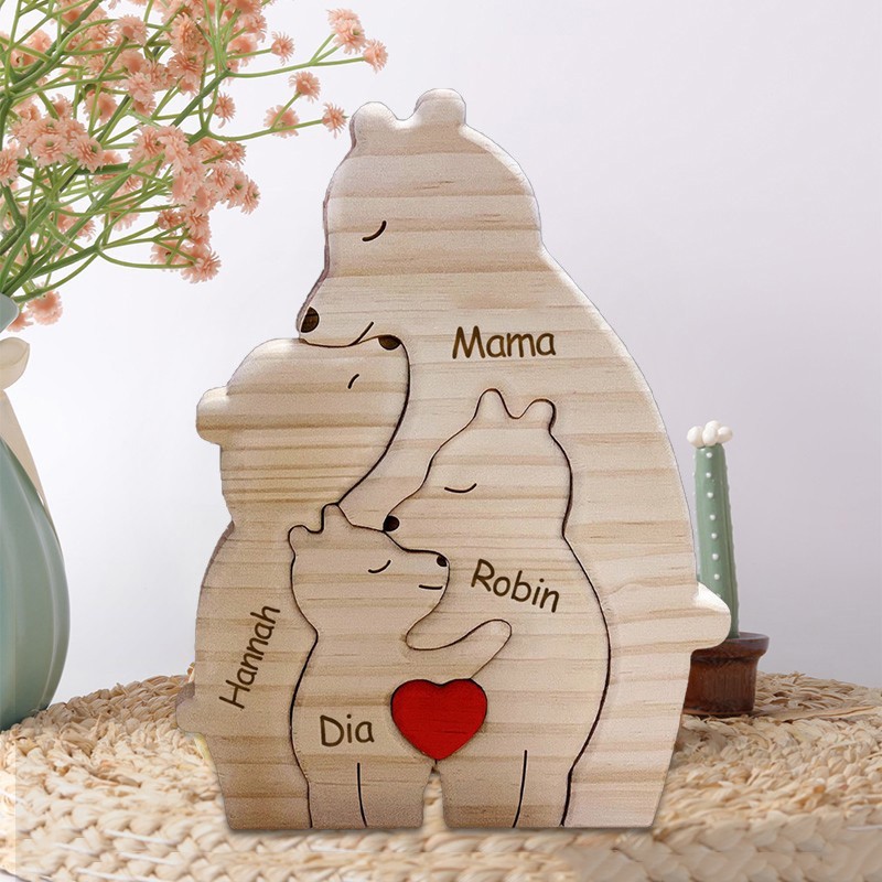 Personalisiertes Holzschild mit dem Umarmung Bären-Puzzle für Mama und Oma mit den Namen der Kinder. Einzigartiges Geburtstagsgeschenk für Mama und Oma. Muttertagsgeschenkidee. Babyparty-Geschenk.