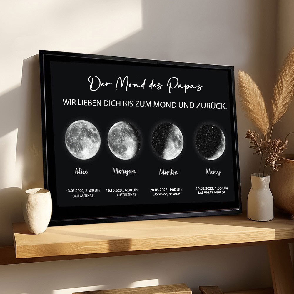 Personalisiertes Holzschild mit Mondphasendruck für Papa, Familienrahmen mit Kindernamen, Geburtstagsgeschenk, perfektes Geschenk für Papa, einzigartige Geschenkideen zum Vatertag