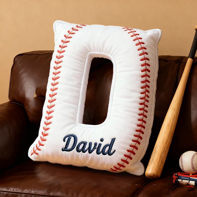 Personalisiertes Kissen in Buchstabenform mit Baseballmotiv und individuellem Namen – das perfekte Weihnachtsgeschenk für Baseballfans!