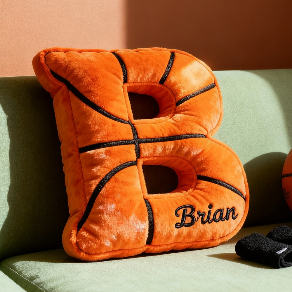 Personalisiertes Kissen in Buchstabenform mit Basketballmotiv und individuellem Namen – das perfekte Weihnachtsgeschenk für Basketballfans!