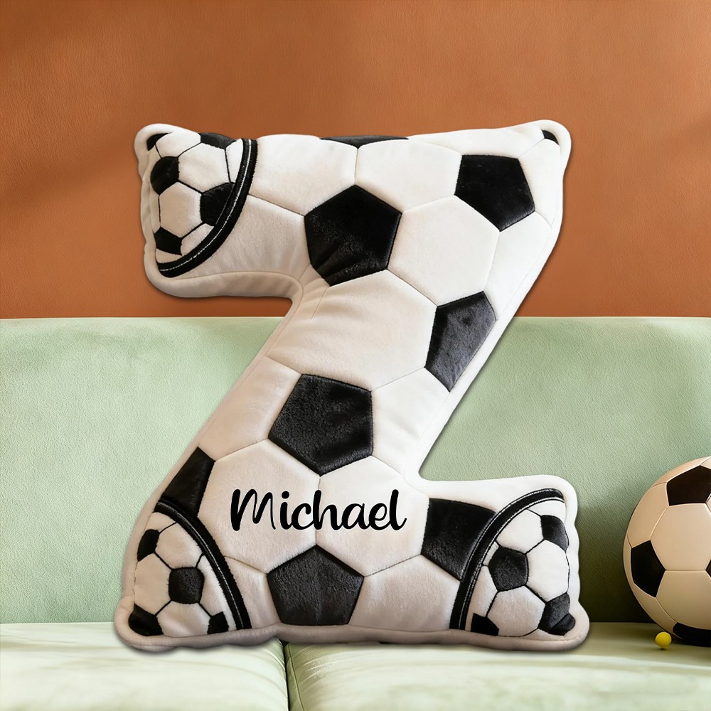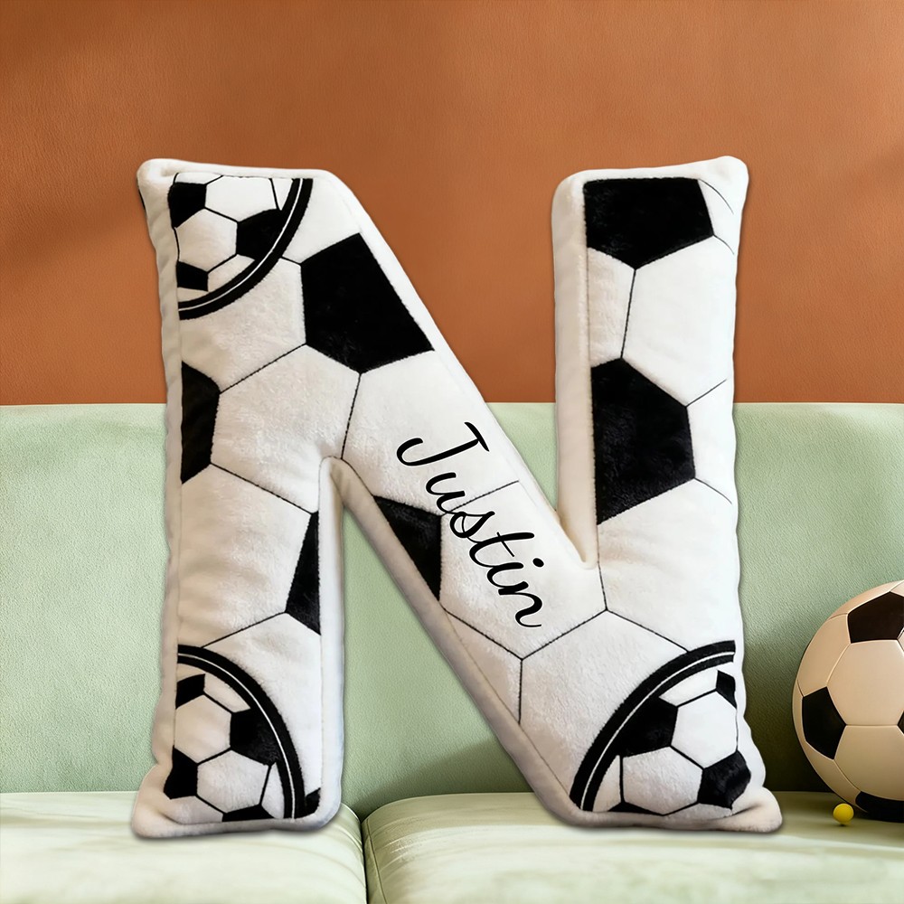 Personalisiertes Kissen in Buchstabenform mit Fußballmotiv und individuellem Namen – das perfekte Weihnachtsgeschenk für Fußballfans