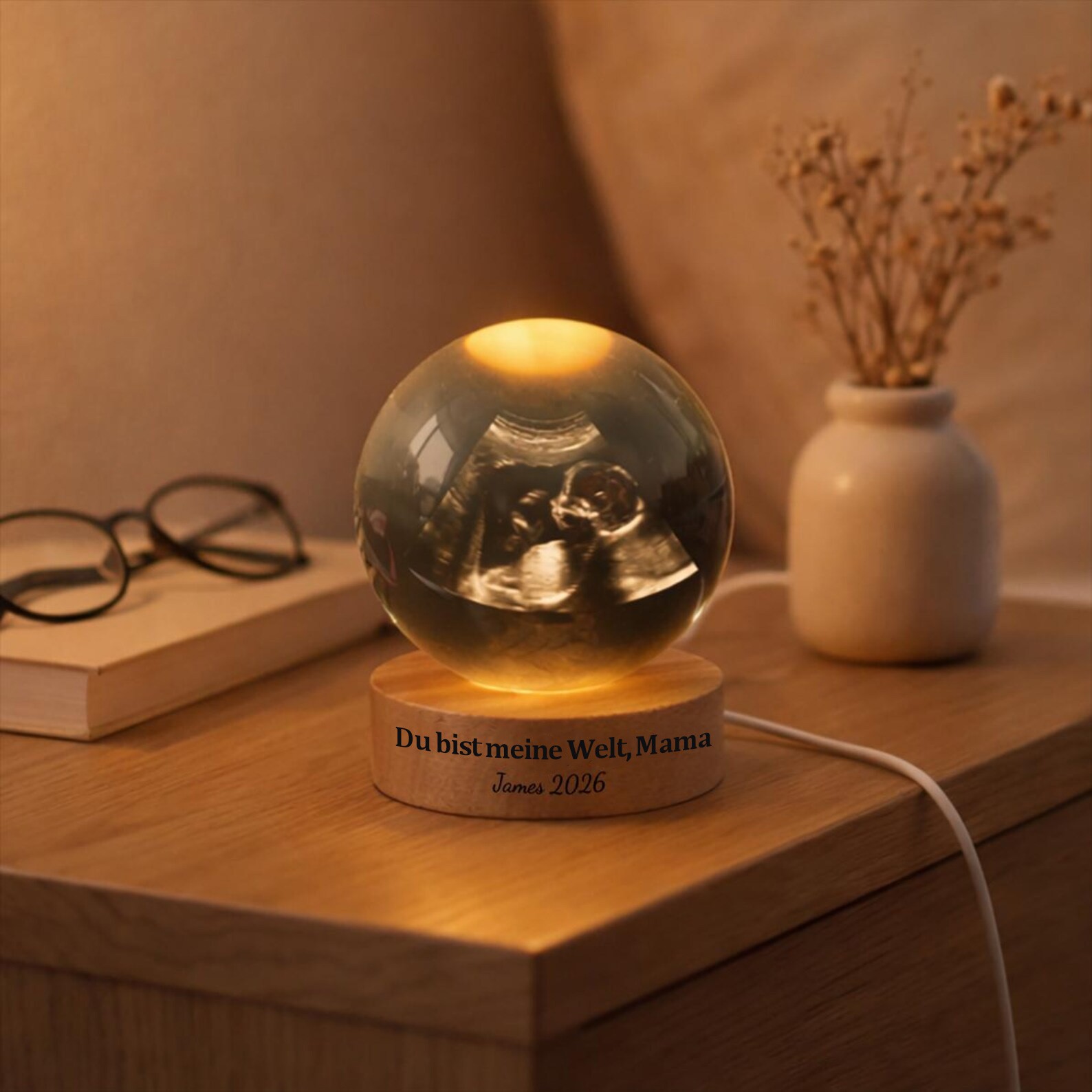 Personalisiertes Kristallkugel-Nachtlicht mit Baby-Ultraschall – Geschenk zum ersten Muttertag für frischgebackene Mütter, Geschenk zur Babyparty