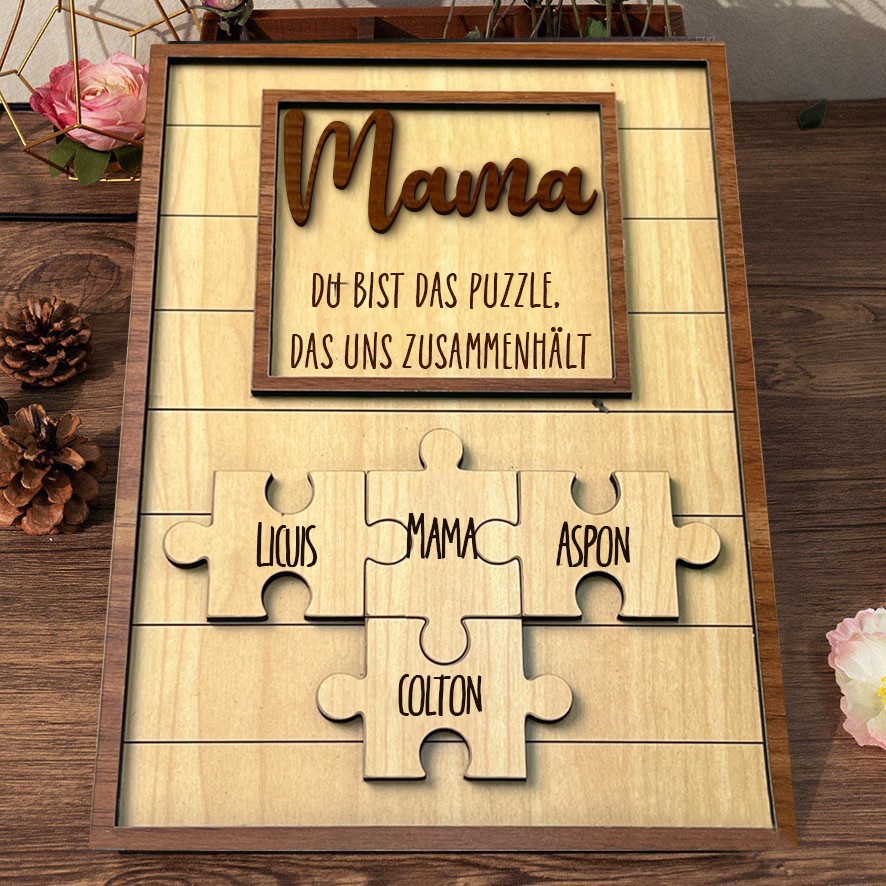 Personalisiertes Mama-Holzschild mit dem Namen des Kindes, individuelles Familienpuzzle-Schild, einzigartiges Geschenk für Mama und Oma, perfektes Muttertagsgeschenk