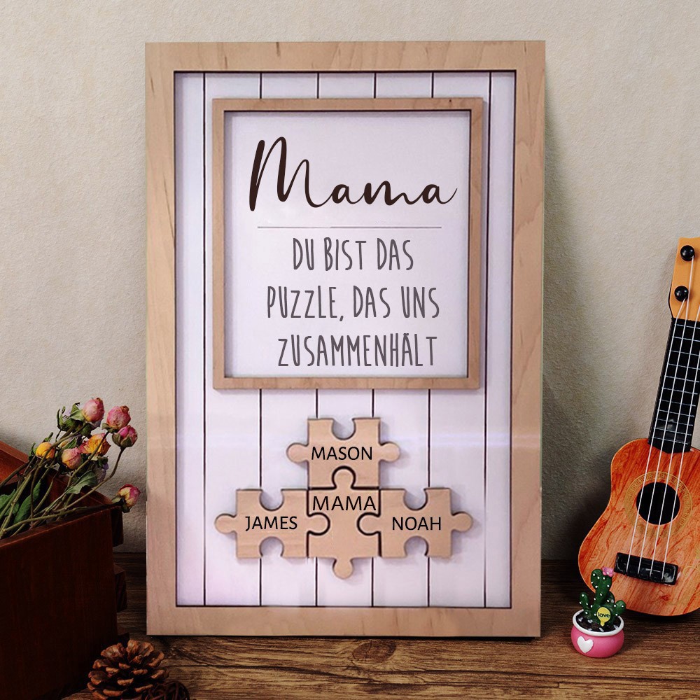 Personalisiertes Mama-Puzzleteile-Holzschild mit Kindernamen, einzigartiges Familienandenken, Muttertag Geschenkideen für frischgebackene Mama oder Oma