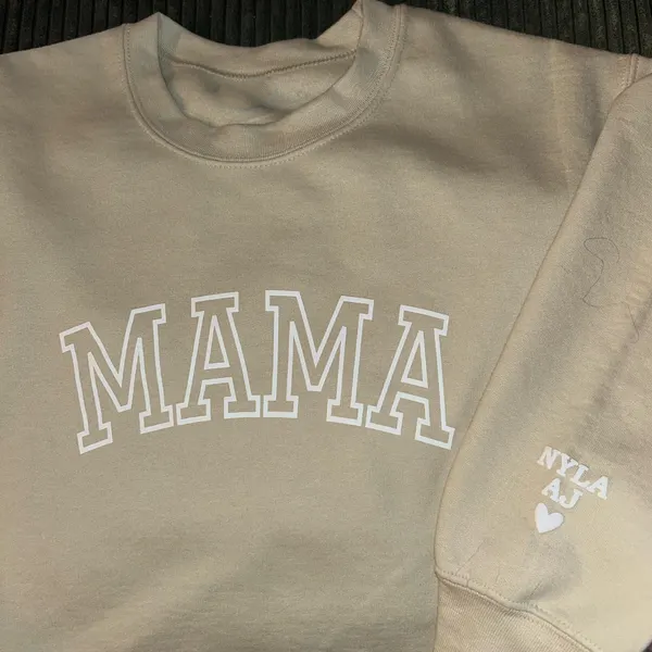 Personalisiertes Mama-Sweatshirt mit den Namen der Kinder auf dem Ärmel – Geburtstagsgeschenk für die Mutter, Geschenk für frischgebackene Mütter, Geschenkideen zum Muttertag