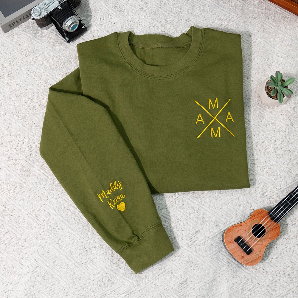 Personalisiertes MAMA-Sweatshirt mit Stickerei und Kindernamen, Familiengeschenk für Mama und Oma, einzigartiges Muttertagsgeschenk, Schwangerschaftsgeschenk für Mama
