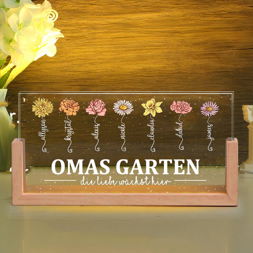 Personalisiertes Mamas Garten-Nachtlicht mit Geburtsblumen und Kindernamen-Aufdruck. Einzigartige Geburtstags-Andenken-Geschenke für Mama, Oma, Muttertags-Geschenkideen