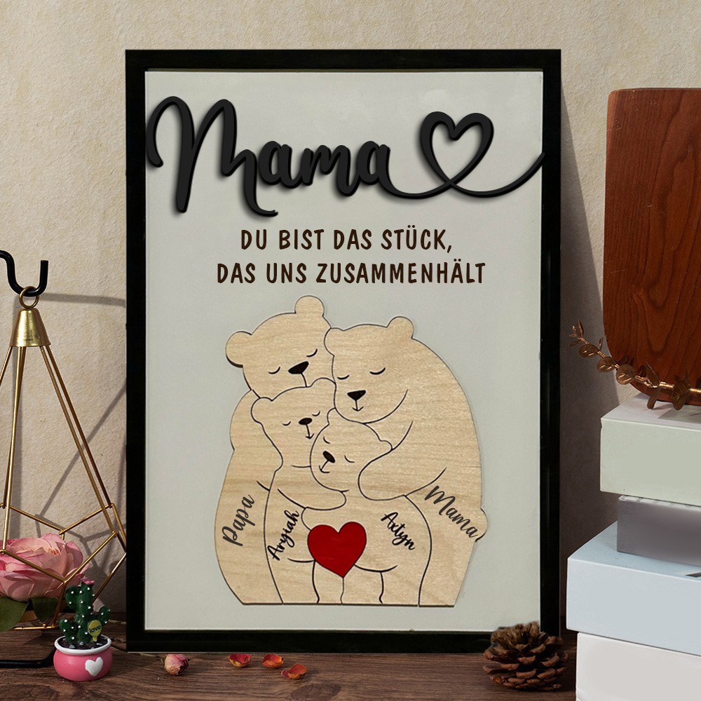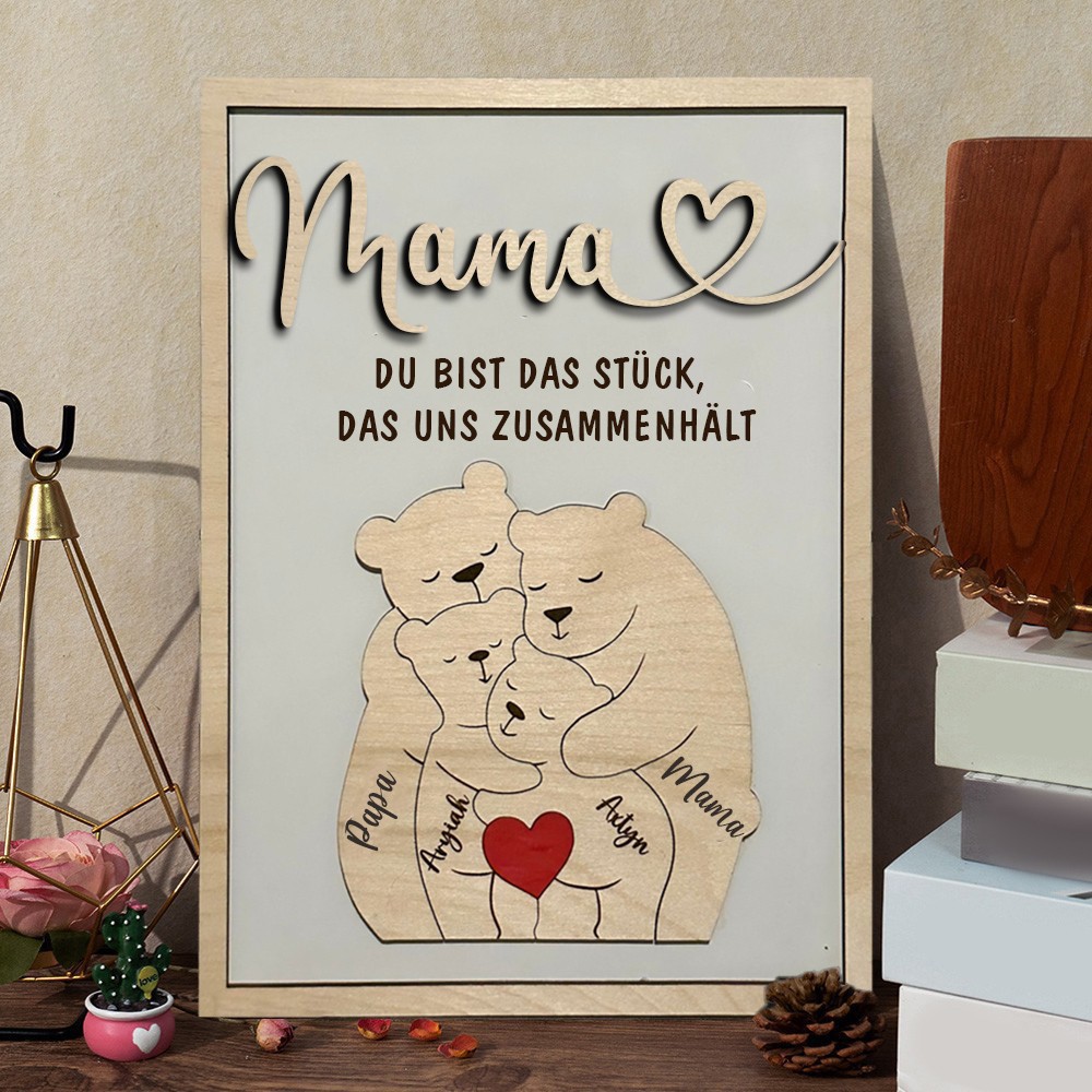 Personalisiertes Muttertagsschild mit der Bärenfamilie, personalisiertes Geschenk für Mama, Mama, du bist das Stück, das uns zusammenhält, einzigartiges Geburtstagsgeschenk für Mama Oma