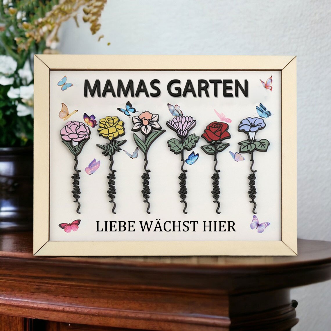 Personalisiertes Oma-Garten-Schild „Hier wächst die Liebe“ mit Geburtsblumen und Namen – Geschenke für Mama, Oma, Muttertagsgeschenkideen